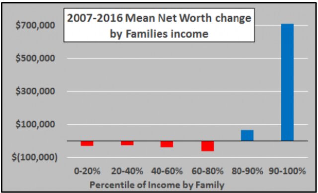 В нижеприведенной таблице подробно описывается рост чистой стоимости домохозяйств по уровням доходов с 2007 по 2016 гг. Те, у кого есть значительные активы, увеличили благосостояние еще больше.