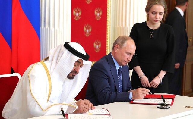 Президент России Владимир Путин и наследный принц Абу-Даби Мухаммед бен Заид Аль Нахайян подписали декларацию о стратегическом партнерстве РФ и ОАЭ.