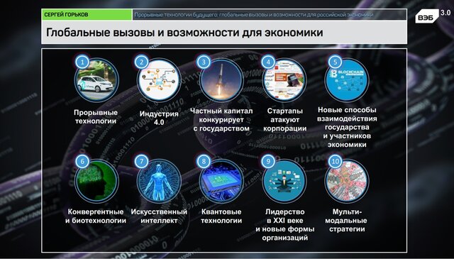 Резкий скачок развития технологий, стартовавший с начала XIX века, делает возможным появление совершенно новой технологической среды. Стали привычными термины, ранее присутствующие на страницах фантастической литературы - квантовый компьютер, дополненная реальность, блокчейн платформы, системы искусственного интеллекта. О трендах научно-технического прорыва поведал участникам форума Vestifinance председатель "Внешэкономбанка" Сергей Горьков. Спикер рассказал о прорывных технологиях будущего и глобальных вызовах и возможностях для российской экономики.