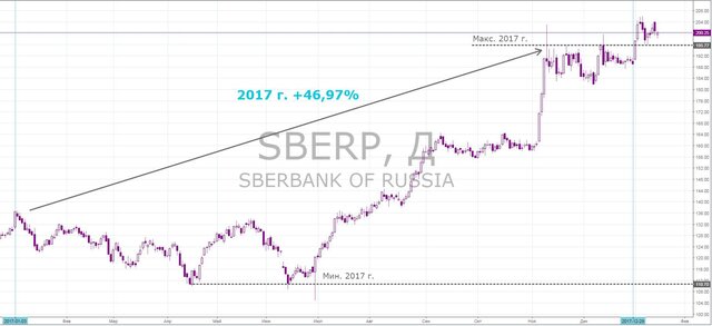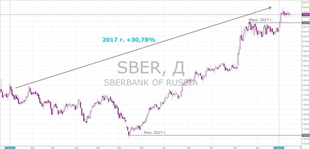 Нельзя не отметить прошлогодних рекордов Сбербанка, акции которого вошли в список лидеров роста среди российских эмитентов, обновив исторические максимумы.