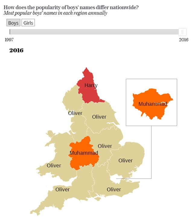 По данным Национальной статистической службы Британии, в стране за последние годы все более популярным становятся такие имена как "Мухаммед".