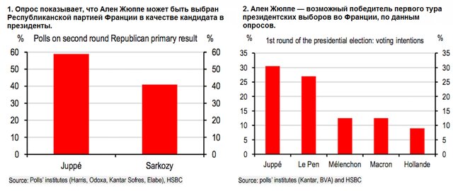 Недавние опросы свидетельствуют, что Марин Ле Пен, лидер партии "Национальный фронт" и яркий пример такого лидера-популиста Европы, будет идти вровень с другим кандидатом в президенты, Аленом Жюппе, если последний будет выбран кандидатом от Республиканской партии Франции. Соперником Жюппе на выдвижение от блока является бывший президент страны — Николя Саркози.