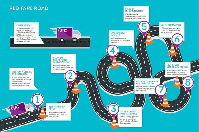 В BRC также отмечают, что вместо ввоза товаров по единому административному документу (Single Administrative Document, SAD), единой формы таможенной декларации в ЕС, заменившей прежние национальные таможенные декларации по импорту и экспорту, Британии будет необходимо урегулировать целый ряд сопутствующих вопросов по различным проверкам и сертификатам товаров.