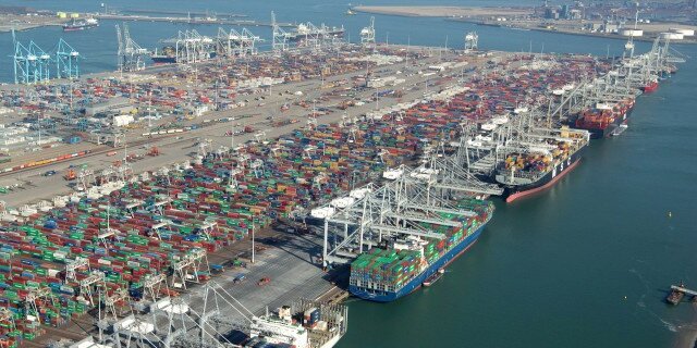 Всё это хорошо видно в Роттердаме, где один из четырех контейнеров прибывает из Китая. И хотя объем товаров, обрабатываемых в порту, вырос на 4,9% в прошлом году, это произошло благодаря возросшей торговли нефтью и нефтепродуктами. Контейнерная перевозка снизилась на 1,1%, а сельскохозяйственных грузов на 3,8%.