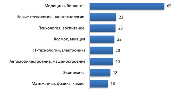 Мужчин значительно больше, чем женщин, волнует прогресс в IT, нанотехнологиях, космосе и авиации, точных науках, машиностроении.