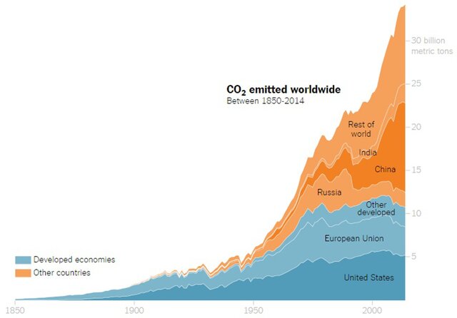 Незадолго до официального заявления президента США по выходу из Парижского соглашения издание New York Times отметило, что "США являются крупнейшим углеродным загрязнителем в истории".