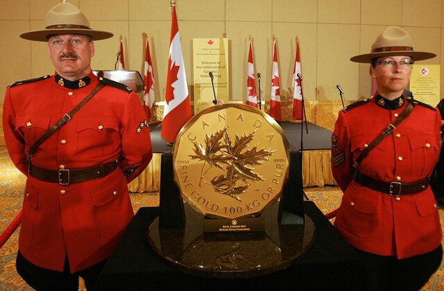 В мире существуют лишь пять таких монет, вес которых составляет 100 кг или 3 215 тройские унции, на сегодняшний день. Такие монеты были впервые отчеканены Королевским канадским монетным двором в 2007 году.
