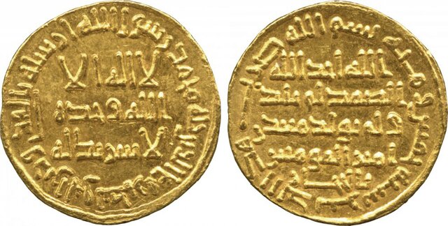 Этот золотой динар периода Омейядов ушел на торгах в Лондоне в апреле 2011 года.