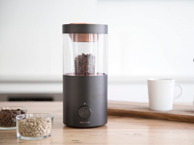 Устройство для жарки кофейных зерен Kelvin Coffee Bean Roaster дает возможность людям жарить кофе прямо дома. Процесс занимает всего несколько минут, а устройство для жарки выглядит очень стильно.
