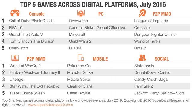 В целом же, согласно отчёту Superdata, видеоигровой рынок продолжает расти - по сравнению с июлем прошлого года выручка участников рынка выросла на 9.5%.