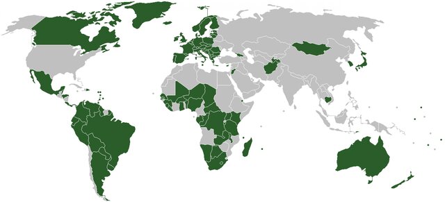 Серым цветом отмечены страны, которые не участвуют в Римском статуте МУС