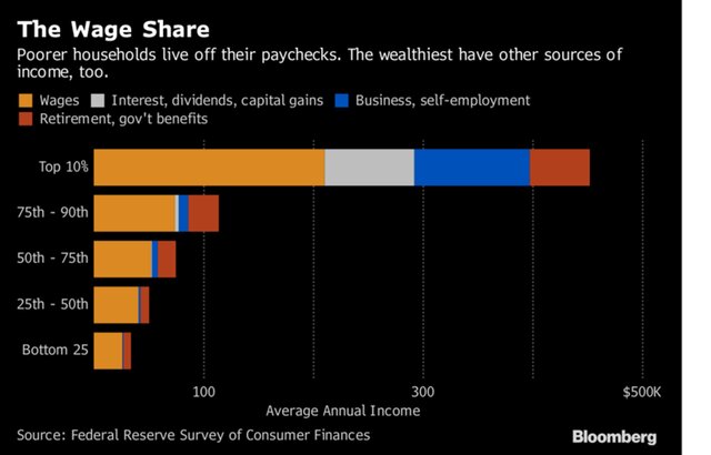 Выплаты подпитывали ралли на фондовой рынке. И самые большие выгоды ралли получили богатые. В твиттах на прошлой неделе Трамп пригласил своих фолловеров проверить их увеличивающиеся пенсионные накопления. Лишь половина домохозяйств имеют подобные накопления.