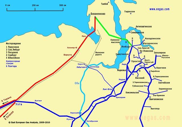 Вместе с развитием добычи на Ямале "Газпром" расширяет северный газотранспортный коридор Единой системы газоснабжения России. Введены в строй газопроводы "Бованенково - Ухта" и "Ухта - Торжок", "Бованенково - Ухта-2" протяженностью 1260 км и цеха на компрессорных станциях "Байдарацкая" и "Интинская" общей мощностью 192 МВт.