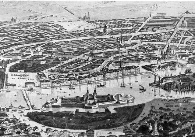 Санкт-Петербург с высоты птичьего полета, гравюра