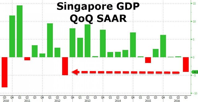 После двух кварталов откровенной экономической слабости, произошло именно то, что должно было произойти. ВВП Сингапура упал сразу на 4,1% в третьем квартале.