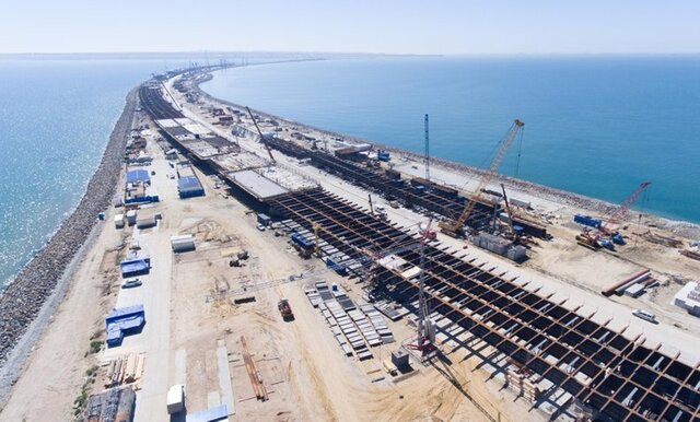 "На сегодняшний день возведены все опоры моста на сухопутной части. Производятся дальнейшие работы по монтажу пролетных строений.