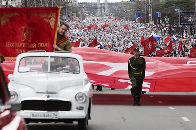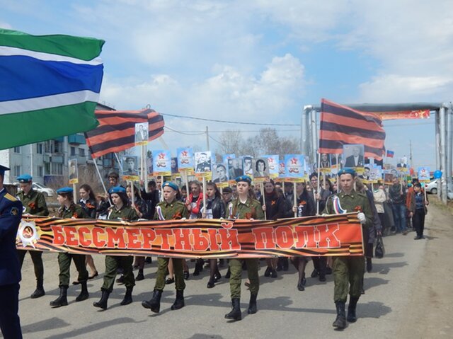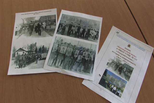 По некоторым данным, первое шествие "Бессмертного полка" прошло еще в 1965 г., когда ученики новосибирской школы № 121 пронесли портреты отцов-фронтовиков во славу Победы в Великой Отечественной войне.