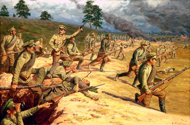 В чём тут причина? Усталость от войны? Безусловно. Надо конечно иметь в виду, что всё-таки наша армия состояла большей частью из крестьян вчерашних, а война Первая мировая была первой войной моторов. Есть множество свидетельств, писем с фронта о том, как они воспринимают вот эту "молотиловку", которую немцы устраивали артиллерийскими обстрелами. Это был просто ад кромешный, солдаты теряли и боевой дух, и вообще понимание, что происходит. Их просто убивали, убивали издали причём, а они не могли даже ответить.