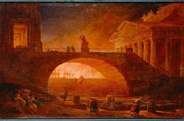 Выгорели храмы Геркулеса и Весты. Пожар уничтожал город шесть дней, четыре района из четырнадцати выгорели полностью.