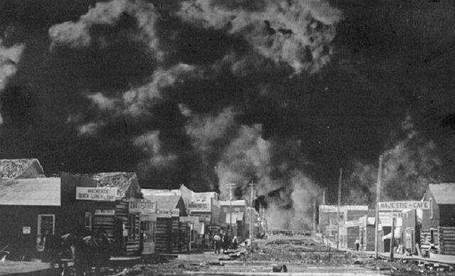 Пламя, распространившись по площади в 200 тыс. га, практически дотла сожгло поселки Матесон, Ирокуа Фоллз, Кокрейн, Поркис Джанкшен, Келсо, Нушка и рамор.