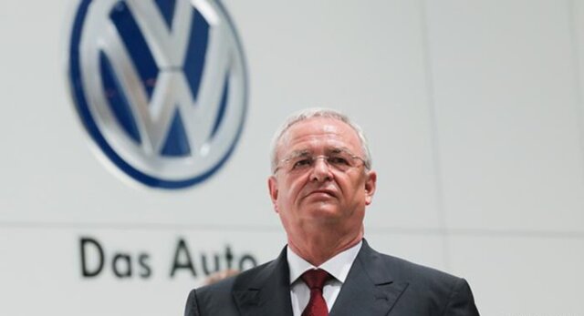 Экс-гендиректор Volkswagen Мартин Винтеркорн на фоне бывшего слогана компании. Фото: Wolfgang Rattay / Reuters