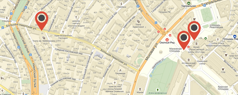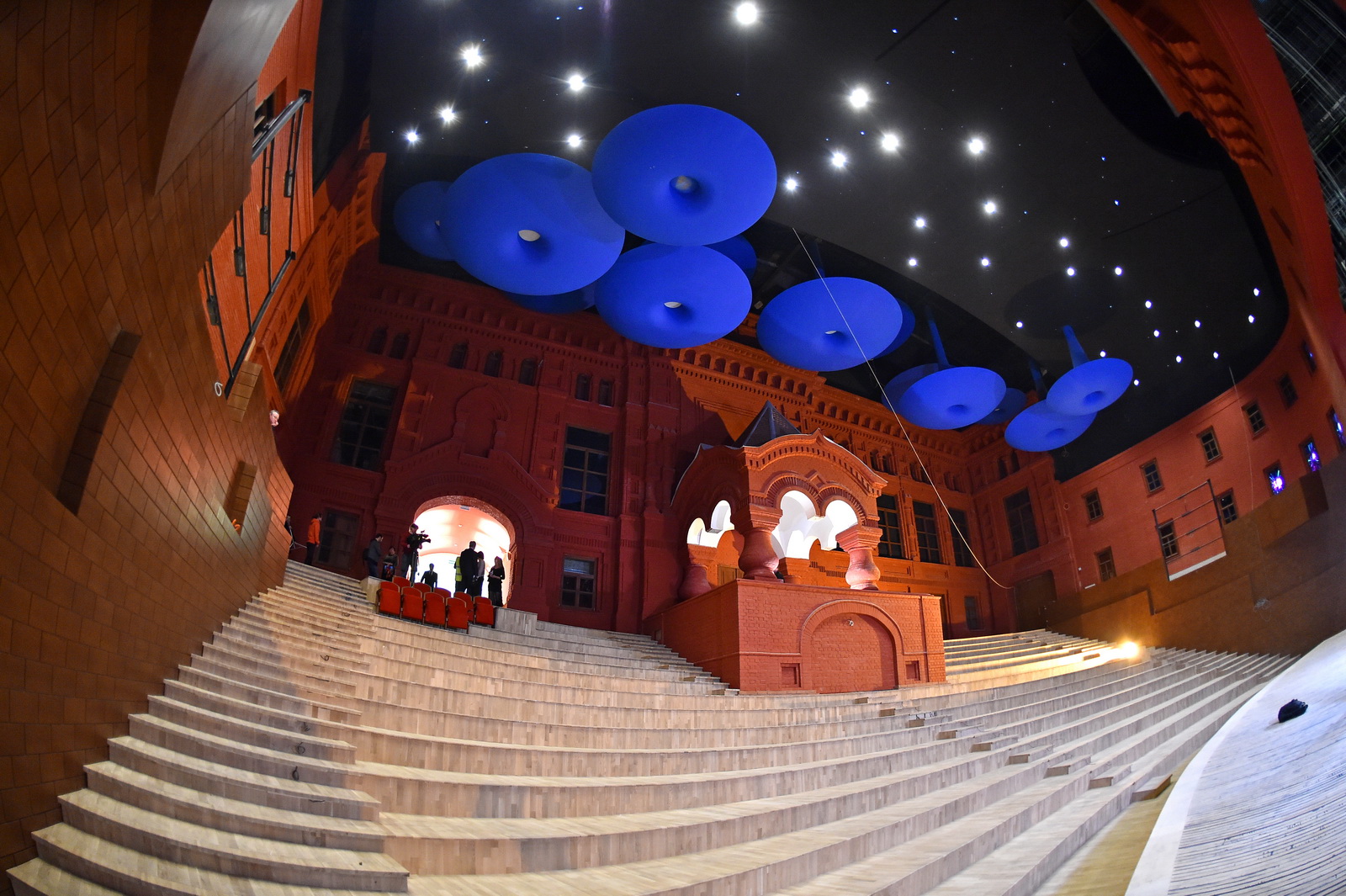 И, наконец, третья точка – новая сцена театра «Геликон-опера». Это даже не здание, а бывший внутренний двор старой московской усадьбы, когда-то пережившей пожар 1812-го года, а ныне превращенной в уникальное театральное пространство. Городская усадьба семьи Глебовых-Стрешневых в свои лучшие времена занимала целый квартал на углу Большой Никитской улицы и Малого Кисловского переулка. В состав владений этой семьи входили Главный дом на Большой Никитской, примыкающий к нему Никитский театр (ныне Театр им. Маяковского) и сказочная внутренняя усадьба, построенная в том же «псевдорусском» стиле, что и Никитский театр, и Государственный исторический музей, и Московская дума.