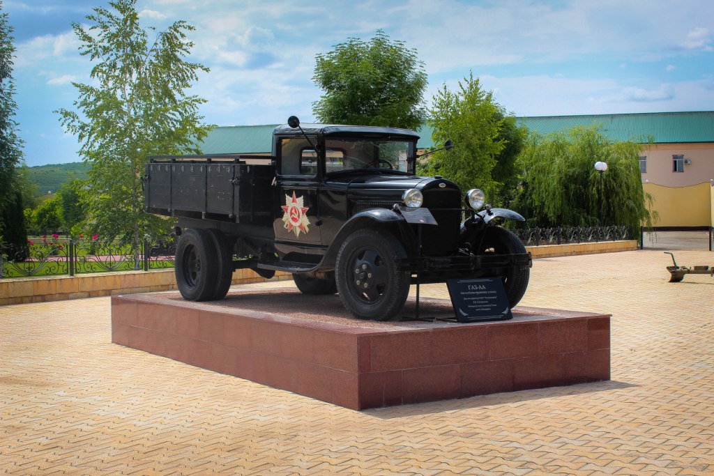 С правой стороны стоит машина ГАЗ - АА "Полуторка". Машина самоходно принимает участие в торжествах, посвященных к Дню Победы.