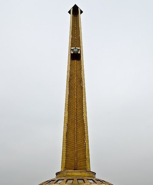 Верхний уровень здания Мемориального комплекса Славы венчает купол...