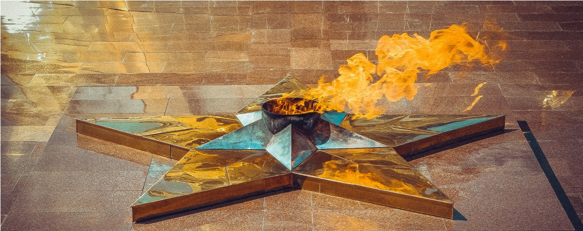 У основания стелы установлена звезда с "Вечным огнем" в память об участниках войны, отстоявших свободу и независимость нашего государства.